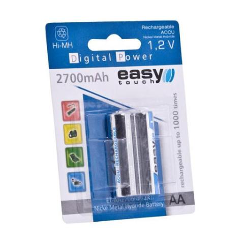 Title: Baterije punjive AA ET-2700 2kom Easy Touch SKU: 005100 Model: ET-AA2700NH-2XBrend: Easy TouchBaterije i punjačiPrice: 5,80 € boja Quantity Stock: 22.00